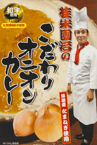 落語家/桂米團治と王様のスプーンのスペシャルコラボカレーです。 淡路産の新鮮な玉ねぎをベースに心を込めて丁寧に煮込んだオリジナルカレーです。和牛使用/日本国内製造原料使用/保存料、合成着色料不使用